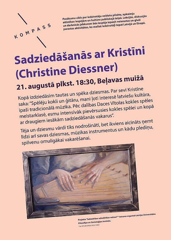 21.08.2025. Sadziedāšanās pasākums Gulbenē. Sadziedāšanās aplis Beļavas muižā ar Kristīni Dīsneri (Christine Diessner). Kristīne no Vācijas jau vairākus gadus dzīvo Stāmerienā un Gulbenes novadā radusi arī savas kopienas sajūtu. Organizē projekta atvērto zinātņu eksperte Herta Pugača.